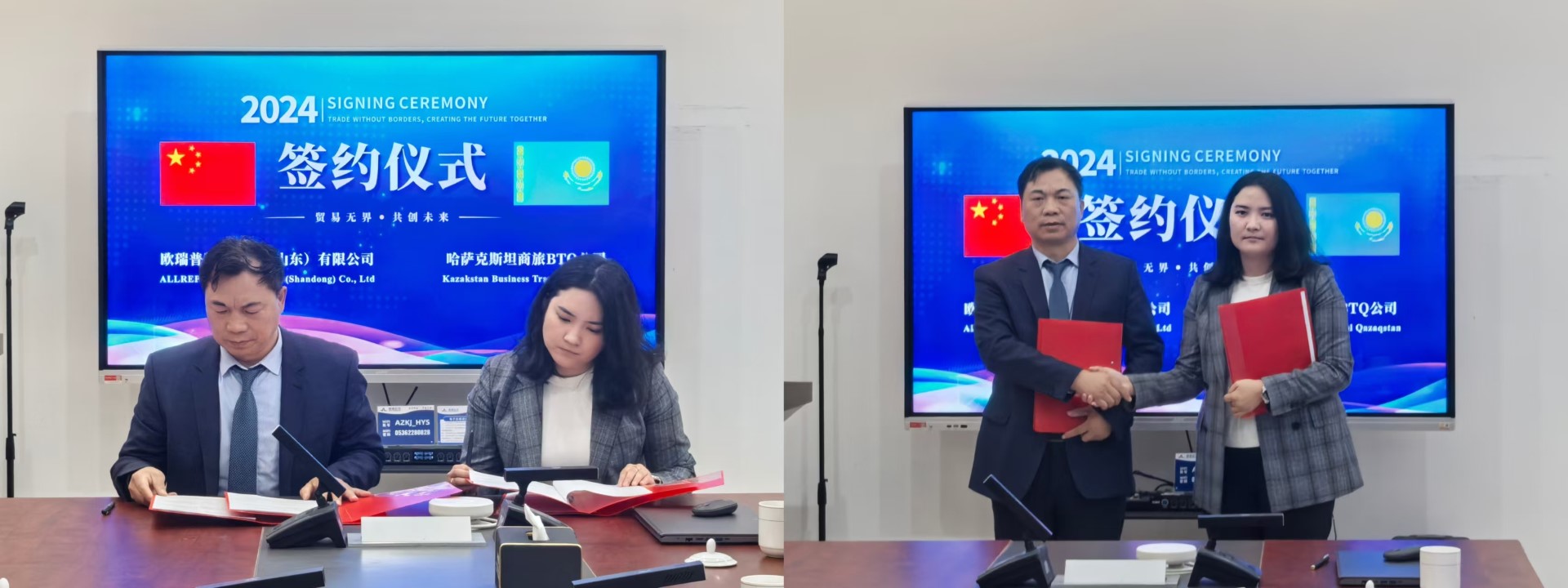 科技創新是推動經濟發展的關鍵,緊密合作是應對國際市場挑戰的有效途徑。隨后,歐瑞普數智科技(山東)有限公司與哈薩克斯坦商旅BTQ公司舉行了簽約儀式,雙方代表正式簽署了戰略合作協議。這一合作代表了中哈兩國企業在“一帶一路”倡議框架下合作的堅定決心,雙方均表示將繼續保持溝通,共同探索更多的合作機會,推動兩國經濟的可持續增長,開啟更廣闊的發展前景。