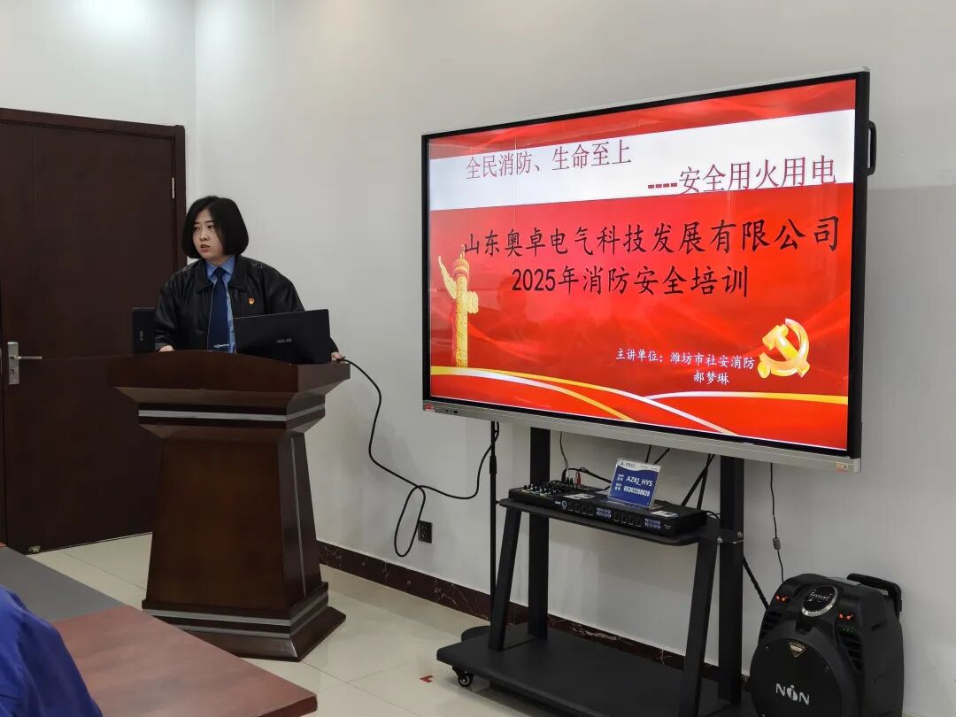 為進一步強化全體員工的消防安全意識,提升火災應急處置與自救互救能力,2025年11月7日,山東奧卓電氣科技發(fā)展有限公司特邀濰坊市社安消防的郝夢琳教官開展消防安全知識培訓,公司各部門員工代表參與本次培訓。
