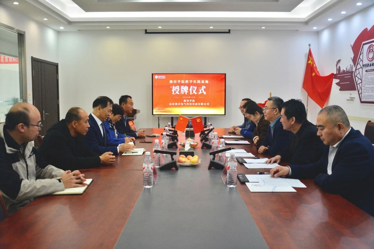 2025年12月9日,濰坊學院法學院黨委書記劉德才、濰坊學院法學院院長杜立聰等領導蒞臨山東奧卓電氣科技發展有限公司,出席“教學實踐基地”授牌儀式,安丘市部分企業家代表參加本次活動。校企雙方就深化校企合作、共育涉外法務人才、護航企業出海等核心事宜展開深入交流,共同見證合作邁入精準對接產業需求的實質性新階段。